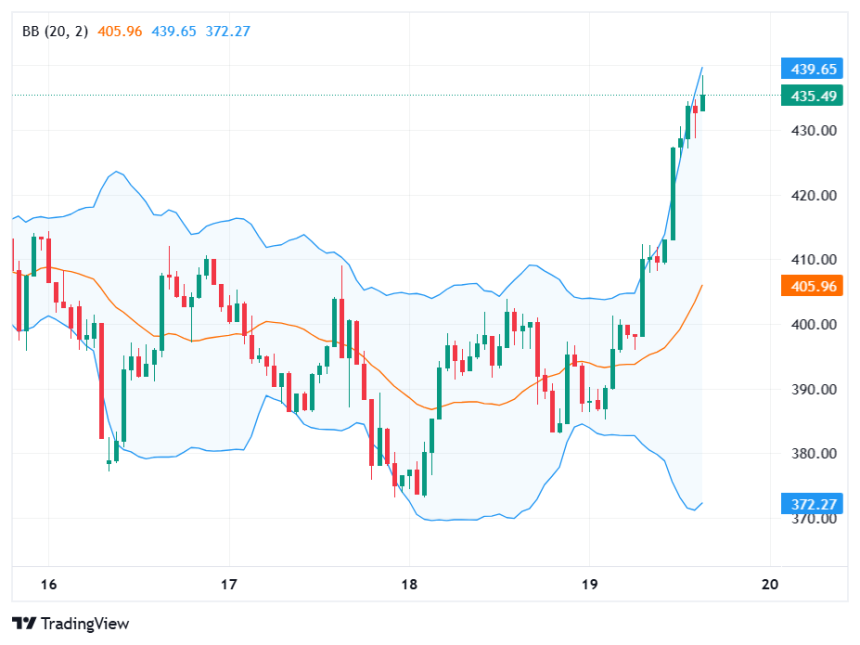 CoinMarketCap data reveals that Zcash is changing hands at $429.95, which represents a 12.49% increase in the last 24 hours. The coin previously soared from a low of $383.09 to an intraday peak of $434.46 before settling at the current price.