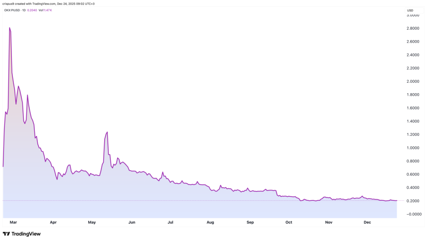 Pi Network, a crypto project that was meant to disrupt the industry, has become one of the biggest flops in 2025 as it plunged from a record high of $3 in February to the current $0.2040.