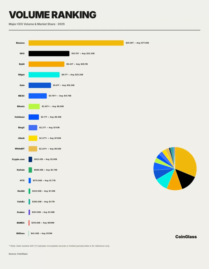 According to the CoinGlass report, Binance led the market with a total derivatives trading volume of approximately $25.09 trillion.
