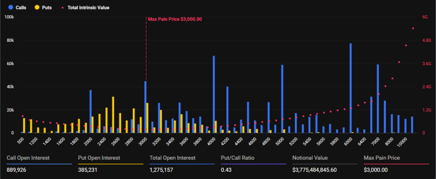 The so-called “max pain” levels sit near $95,000 for Bitcoin and $3,000 for Ethereum, the price points where options sellers stand to profit the most, while buyers experience the most financial loss.