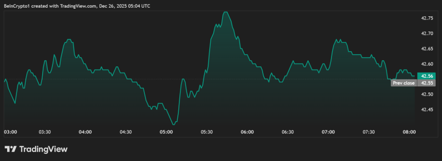 Despite the event‘s sheer size, the market appears to be calm. Bitcoin’s implied 30-day volatility index (DVOL) sits around 42%, down from 63% in late November. This suggests that panic-driven swings are unlikely, and the expiry may settle more orderly than feared.