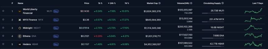 Hedera (HBAR) is back on traders radars heading into the final week of 2025, after pushing into the top performers list among major cryptocurrencies.