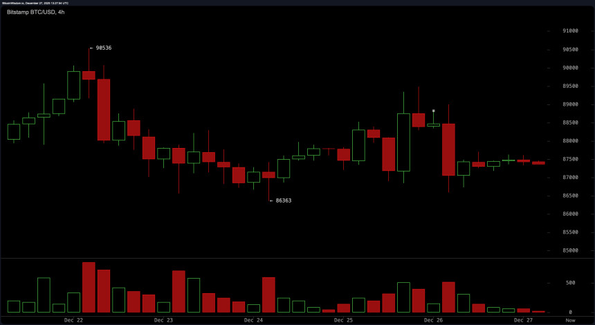 Bitcoin‘s price as of Dec. 27, 2025, is a cool $87,382, holding a market cap of $1.74 trillion and logging $30.6 billion in 24-hour trading volume. The digital heavyweight floated between $86,673 and $88,965 in a tight intraday range, while the market exhibited signs of tightening ahead of a probable breakout. Indicators across multiple timeframes—from hourly noise to daily drama—paint a picture that’s less about certainty and more about watching the fuse before the spark.