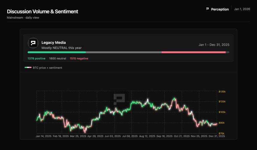 Despite mainstream media coverage of crypto becoming more negative in recent years, a report found that in 2025, legacy media's coverage of bitcoin became more balanced, with neutral reporting outweighing negative stories.