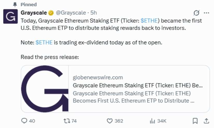 Peter Mintzberg, Chief Executive Officer of Grayscale, called the distribution “a landmark moment, not just for Grayscale, but for the entire Ethereum community and ETPs at large.” He emphasized that Grayscale is “reinforcing its role as an early leader in bringing new digital-asset capabilities into the ETP wrapper.”