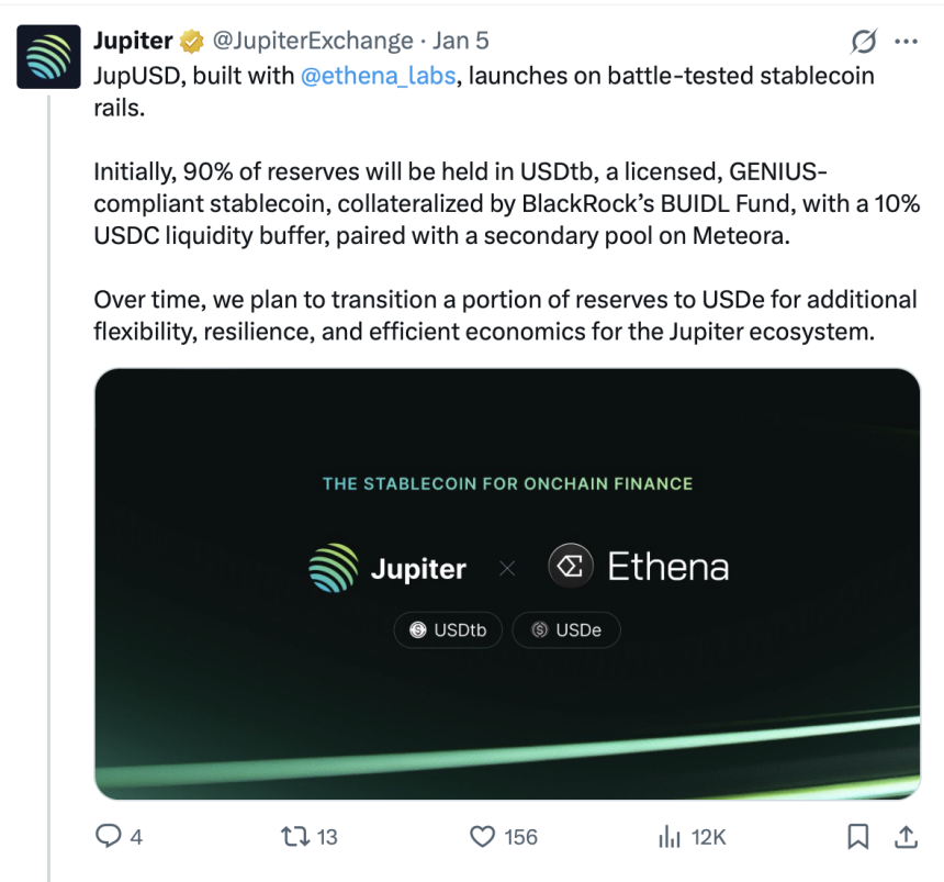For institutions and market makers, Jupiter said JupUSD supports onchain minting and redemption against USDC through single-transaction settlement on Solana.