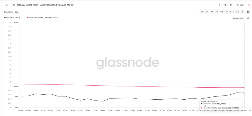 While long-term holders have stepped back from selling, as Ehsani highlights, short-term holders now control near-term price behavior. Short-term holders are wallets that acquired Bitcoin within roughly the last 155 days and tend to react strongly around break-even levels.