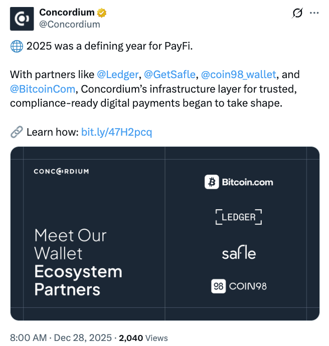 Concordium has established itself as a major institutional-grade digital asset service provider, partnering with entities including Tether-backed stablecoin company StablR.
