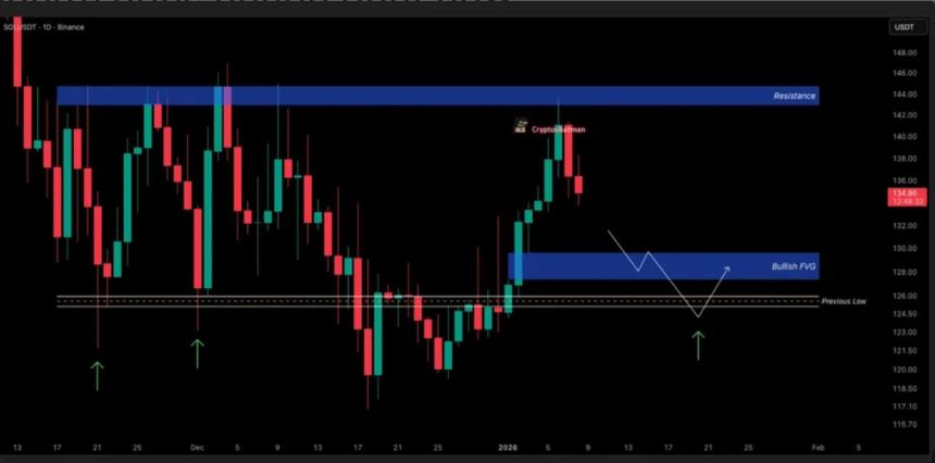 Elsewhere, analyst Batman on X provides a detailed analysis of Solanas current price action, including specific levels to watch. He notes that Solana has faced rejection along a strong resistance level around $144, which marked a local top.