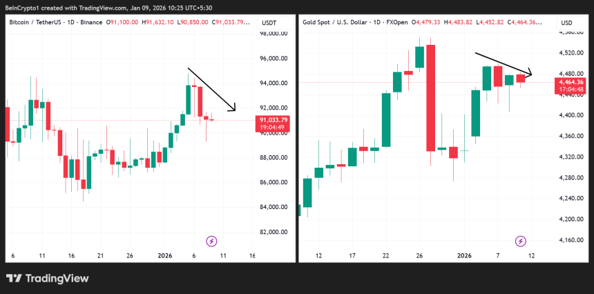 Bitcoin (BTC) and Gold (XAU) Price Performances. Source: TradingView