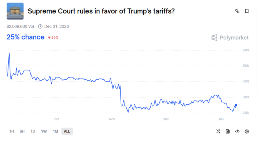 Odds of Supreme Court Ruling in Favor of Trump Tariffs. Source: Polymarket
