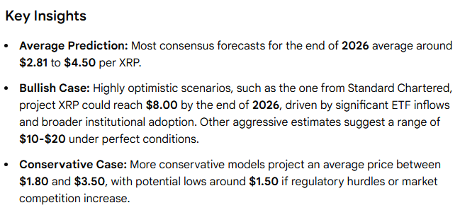 Googles chatbot Gemini also shared its December 2026 price outlook for XRP, outlining conservative, average, and bullish scenarios.