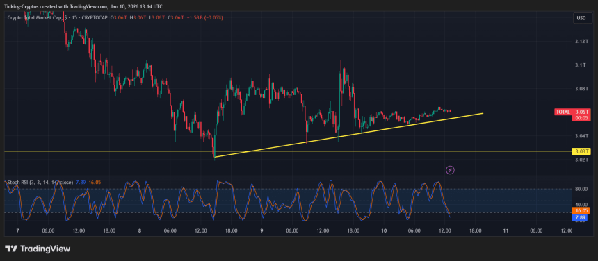 Looking at the current market structure from the total cryptocurrency market cap chart, we are seeing a classic consolidation pattern that typically precedes a massive breakout.