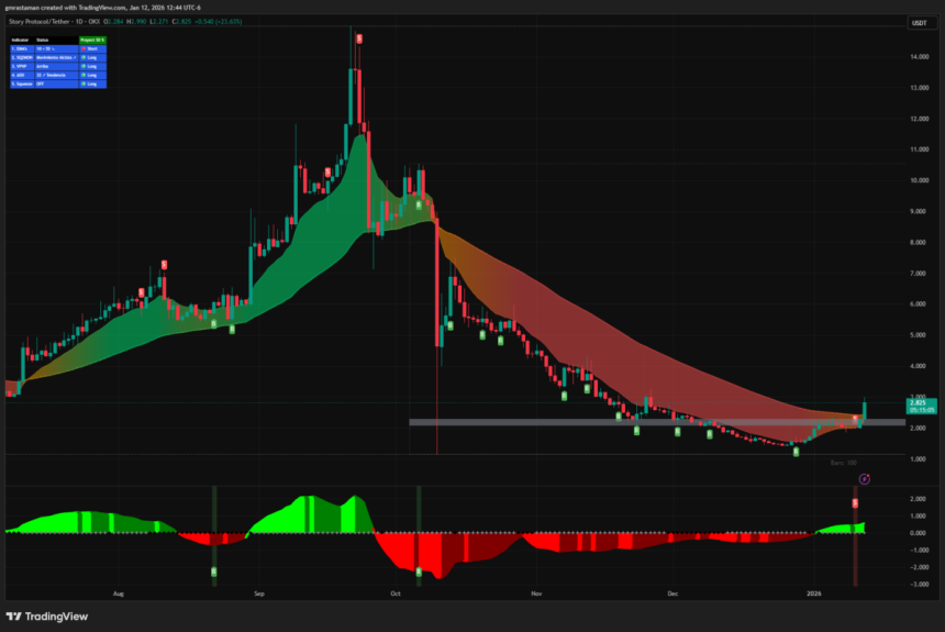The price of Story Protocol‘s IP token rose by more than 26% over the previous 24 hours to peak at $2.90, beating the cryptocurrency market and signaling the token’s largest intraday increase since October 2025.