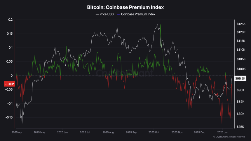 Bitcoin's BTC$95,174.77 price hit two-month highs abov e $95,000 on Tuesday, but U.S. investors aren't buying as much as people overseas. A key measure called the “Coinbase Premium” shows this gap clearly.