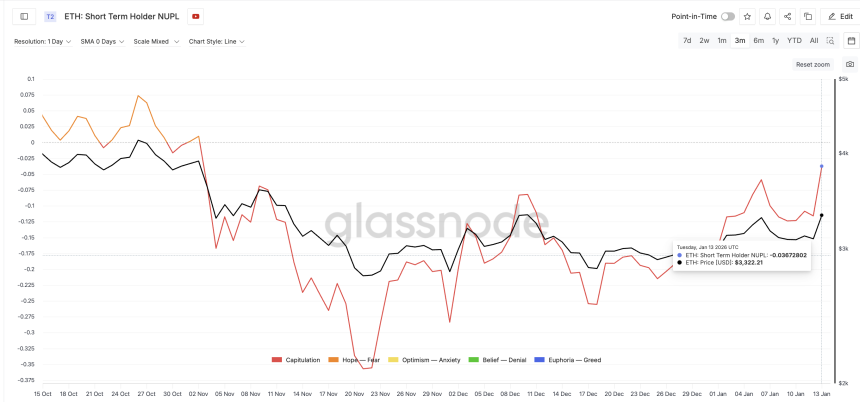 This matters because the last time short-term holder NUPL made a local peak, Ethereum pulled back sharply. In early January, as NUPL peaked, Ethereum dropped from around $3,295 to roughly $3,090, a decline of about 6%. That historical reaction makes the current NUPL rise worth watching.