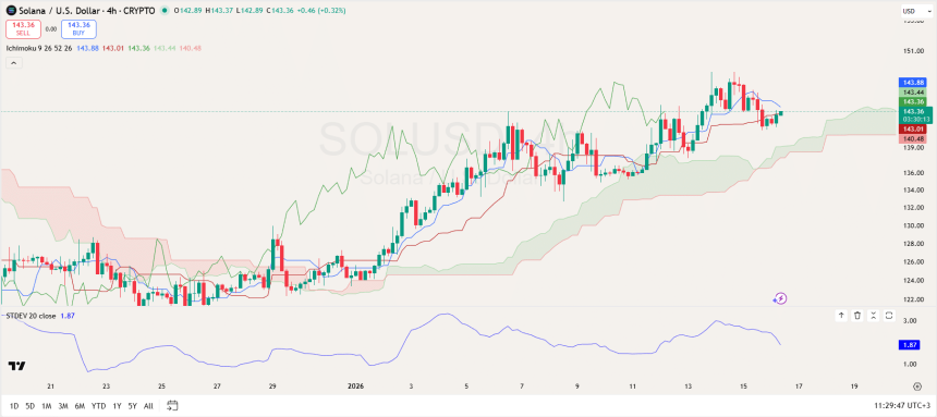 Despite the overall bullish trend, Solana is encountering resistance near $146, and a possible pullback could occur if it fails to break this level. The Ichimoku Cloud support level around $140.48 is critical for maintaining the upward momentum.