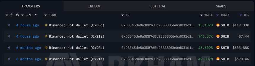 A Binance-linked whale that had been inactive for six months just made a comeback with a new $119,330 bet on Shiba Inu (SHIB), sending 15,182,013,963 SHIB into wallet “0xDB345...fba0,” according to Arkham. The same address got the most SHIB in mid-2025, grabbing 46.6 billion tokens in a multistage buildup before disappearing.