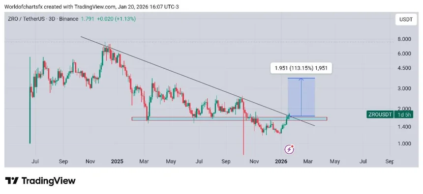 If ZRO holds above channel resistance, chart projections suggest a potential move toward the $2.50 area. A rejection, on the other hand, could keep price action contained within the existing range.