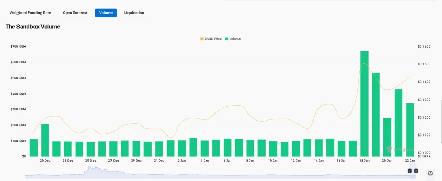Derivatives markets have also contributed to SANDs momentum. Open interest surged by over 8% to about $54 million, signaling that traders have increased exposure as price climbed.