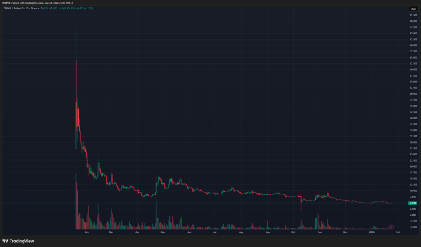 The performance of the TRUMP token, promoted by Donald Trump, after its listing on Binance.