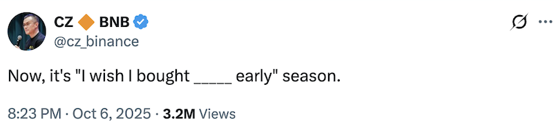 CZ had also tweeted “Now, it‘s ’I wish i bought early season” a few days before the October 10 crash.
