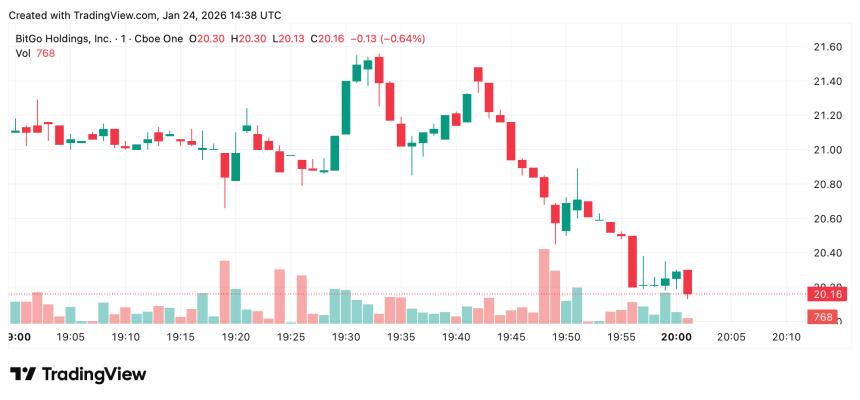 Fresh listings did not escape the turbulence. Bitgos NYSE debut (BTGO) was a bruising one, with shares falling 21.58% on opening day. Elsewhere on the NYSE, Circle (CRCL) slipped a marginal 0.03%, Bullish (BLSH) declined 2%, and Bitmine Immersion Technologies (BMNR) eased 0.35%—moves that reflected hesitation rather than panic, but hesitation nonetheless.