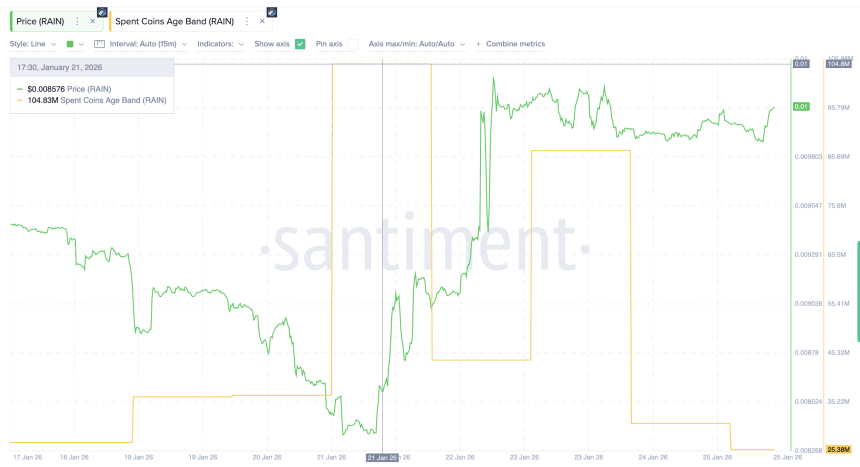 WikiBit 2026-01-26 10:02RAIN price has rallied nearly 40% over the past 30 days, keeping its breakout structure intact. The