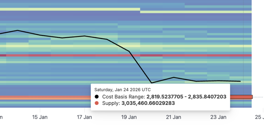 A cost-basis wall forms when a large amount of ETH was previously bought in a tight price range. When price revisits that zone or even gets close to that, holders often sell to break even. That kind of early distribution creates heavy resistance, even if sentiment looks bullish.