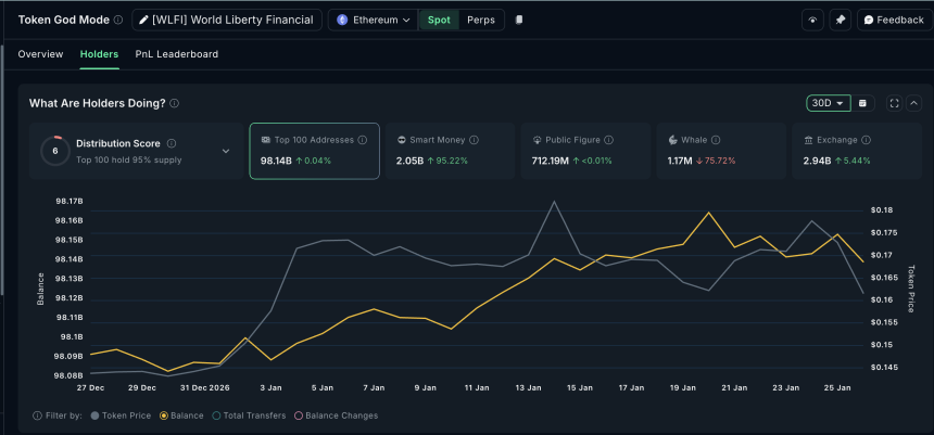 Over the same period, whales have reduced their WLFI holdings by more than 75%, while smart money wallets have increased exposure by roughly 95%.