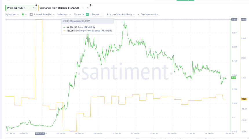 Exchange flow data suggests otherwise. In late December, Render saw heavy inflows into exchanges, signaling strong selling pressure.