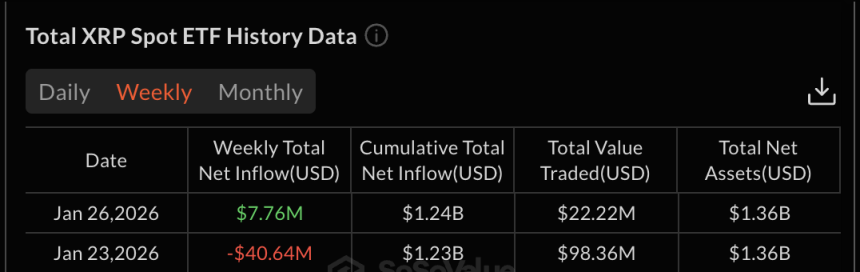 This matters because speculative money usually exits near local lows, while conviction money tends to build positions quietly. XRP ETF flows, one of the biggest conviction metrics, support this view. After ending last week in net outflows, the current week has started positively, with fresh inflows returning.