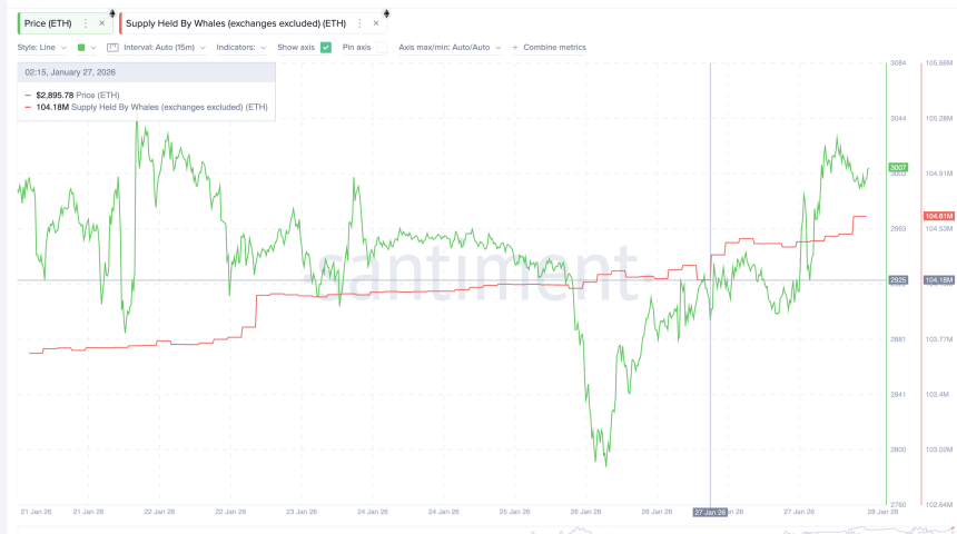 Alongside that stabilization and hope for bearish invalidation, large holders stepped in. Ethereum whales increased their holdings from 104.18 million $ETH to 104.61 million $ETH following the ERC-8004 announcement. That is an addition of roughly 430,000 $ETH. At an average price, this equates to approximately $1.3 billion in accumulation.