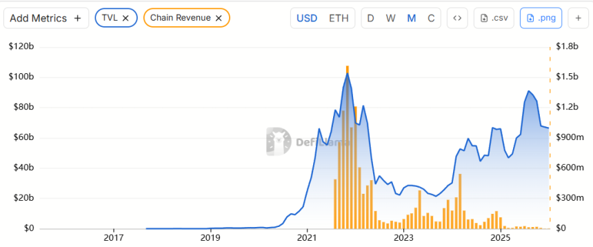Ethereums monthly revenue. Source: DefiLlama