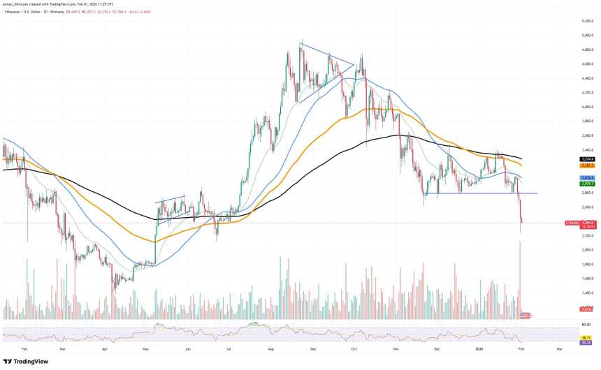 WikiBit 2026-02-02 02:04After failing to hold its position above significant moving averages, Ethereum's price action fell s