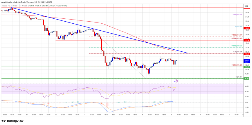 WikiBit 2026-02-03 13:02Solana failed to settle above $112 and extended losses. $SOL price is now recovering above $102 but