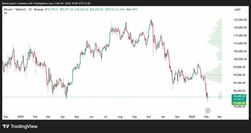 As of this writing on February 4, Bitcoin is trading at $76,645 after briefly dipping to an intra-day low of $72,945 in the previous session.