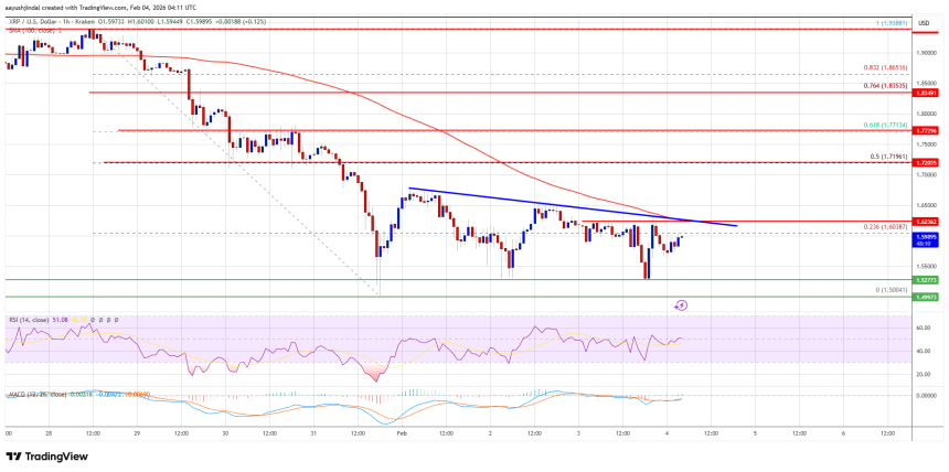 WikiBit 2026-02-04 18:02$XRP price extended losses and traded below $1.5320. The price is now attempting to recover but face