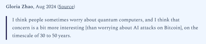 Carters compilation shows that many developers push back on these claims, noting that Bitcoin already minimizes key exposure by default and that users can further reduce risk through best practices. Developers also emphasized that theoretical vulnerabilities do not automatically translate into real-world exploitability.