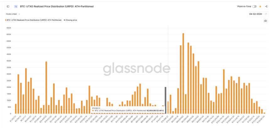 The first metric questioning the rebound is the UTXO Realized Price Distribution (URPD), which maps where large portions of Bitcoins supply last moved.