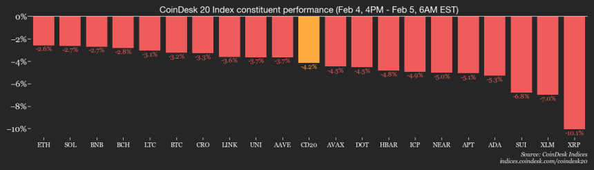 WikiBit 2026-02-05 21:56By Omkar Godbole (All times ET unless indicated otherwise)With bitcoin's $BTC$71,091.27 bear market