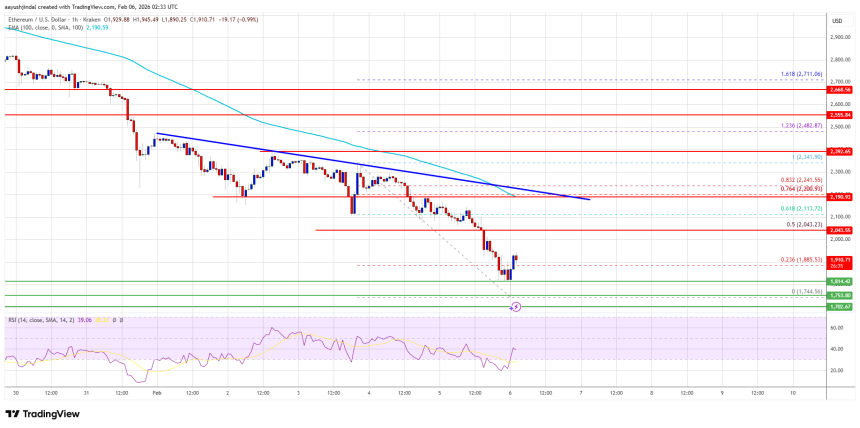 WikiBit 2026-02-06 11:02Ethereum price extended its decline below $2,000 and $1,950. $ETH is now attempting to recover from