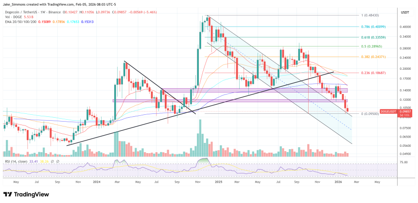 In a Feb. 3 post on X, Crypto Patel shared a 2-week $DOGE/USDT chart and wrote that $DOGE is “at the EXACT level that triggered 17,000% pump,” pointing to a multi-year base that has repeatedly acted as demand since 2021. The post leans heavily on the idea that $DOGEs larger moves have originated from the same structural region, with the current drawdown presented as a typical cycle reset rather than a breakdown.