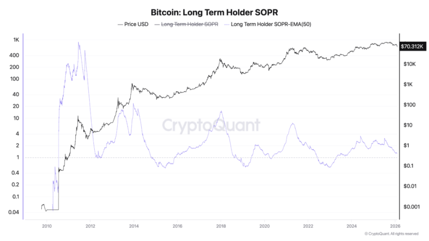 The second chart, long-term holder SOPR, adds a different kind of signal.