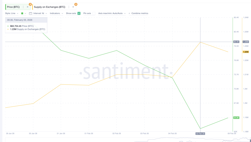 Bitcoin supply on exchanges fell from around 1.23 million $BTC to 1.22 million $BTC between February 5 and February 6. This decline suggests that traders are withdrawing coins, possibly for short-term holding, expecting higher prices.