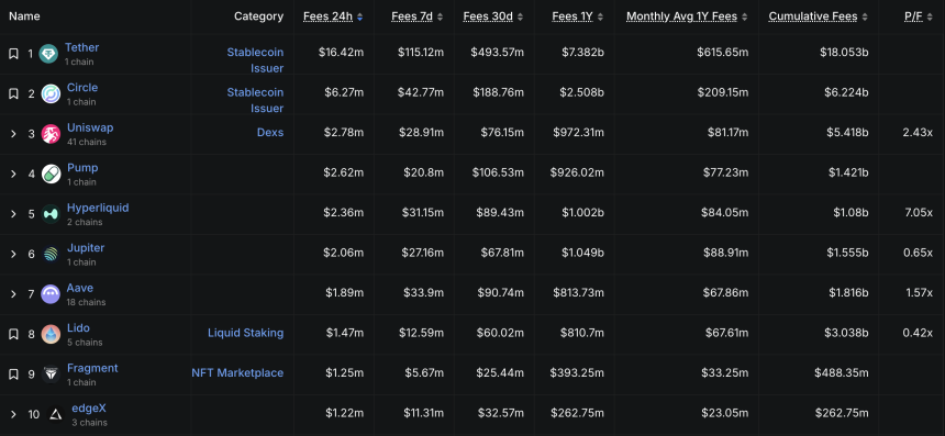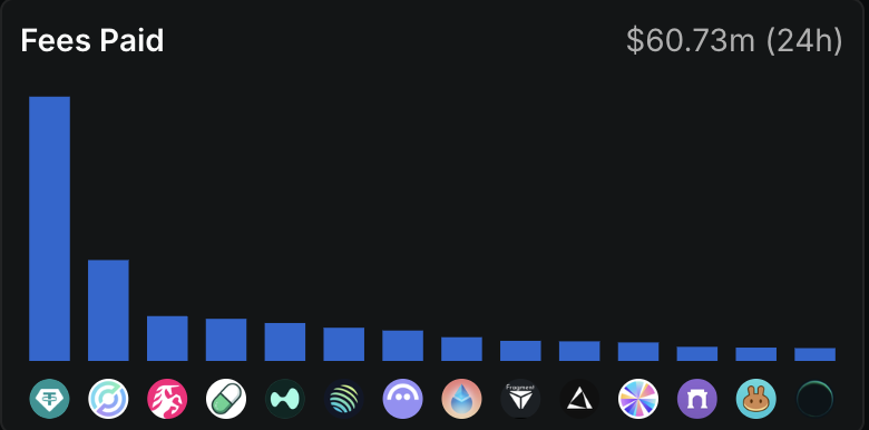 Over $60.7 million in fees were paid over the last 24 hours to crypto exchanges and decentralized finance applications. Source: DeFiLlama