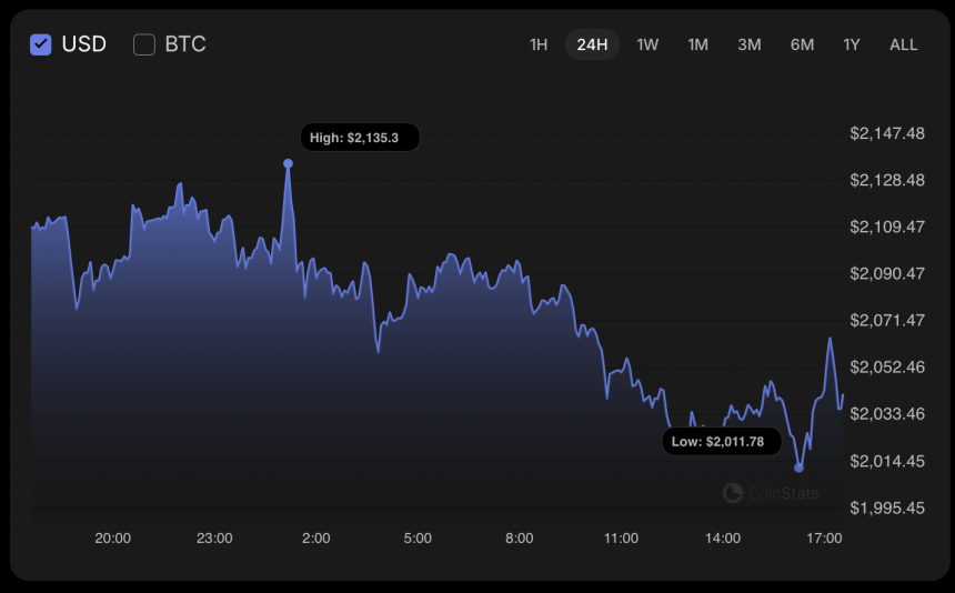 The rate of Ethereum ($ETH) has fallen by 3% over the past day.
