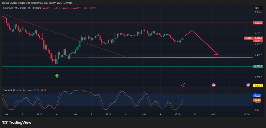 Recent data confirms a strong correlation between Bitcoin's failure to hold $70,000 and Ethereum's inability to sustain its recent gains. As Bitcoin trades near $69,500, Ethereum has already seen a 24-hour decline of approximately 2.65%. If the bearish momentum continues, a break below the $2,000 psychological levelis highly probable, potentially triggering a cascade toward the $1,950and $1,880targets.
