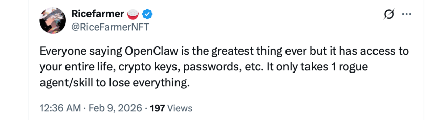 There are many warnings about Openclaw and crypto meshing together and a great deal of people explaining how things can get risky.