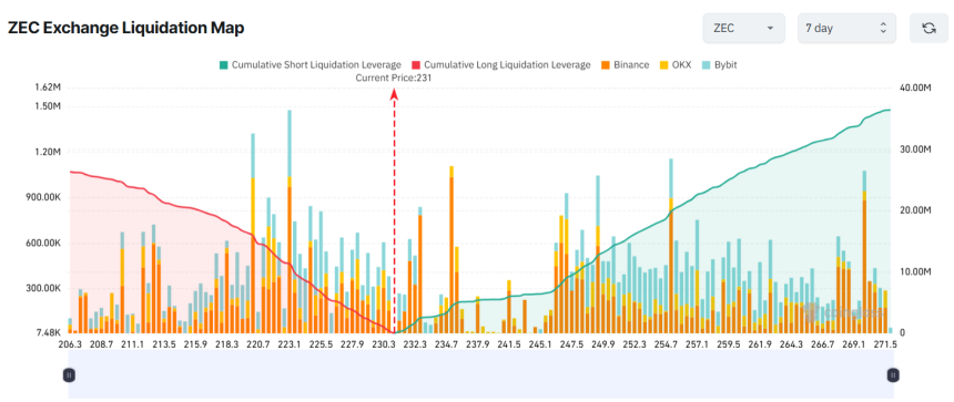 $ZEC Exchange Liquidation Map. Source: Coinglass